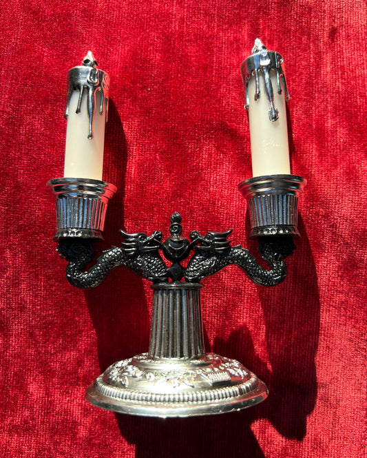 Kitsch Mid Century Dragon Candelabra Salt & Pepper Set- Boxed