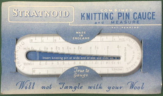 1940s Made in ENGLAND Knitting Pin Gauge and Measure on original STRATNOID Packaging