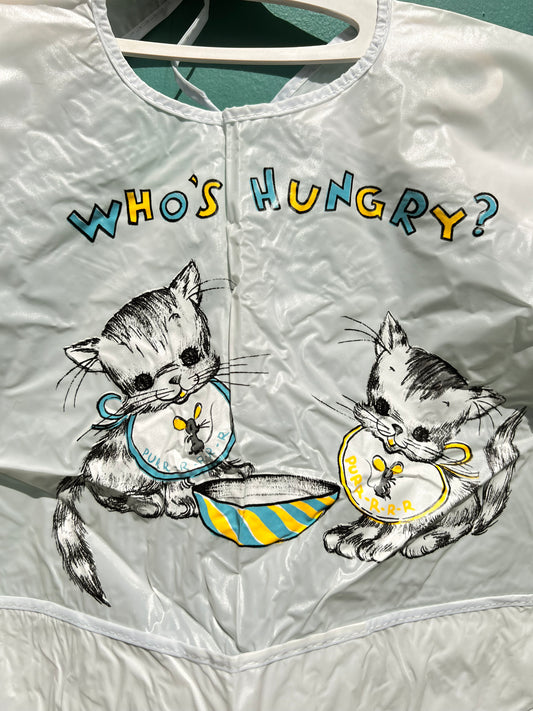 Who's Hungry ? 1950s Vinyl Bib with Sleeves and Pocket