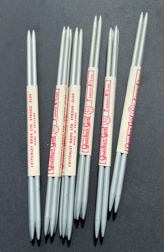One Set of 4 Gauge 7 - 4.5mm Quaker Girl Metal Knitting Pins