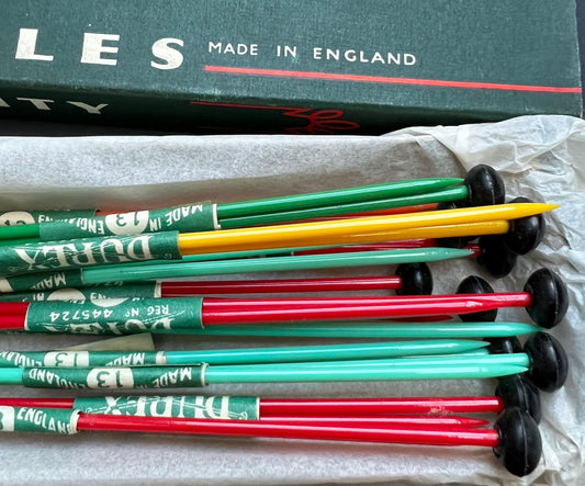 Box of 12 pairs of DUREX Casein KNITTING NEEDLES (Yes you read that right) Gauge 13