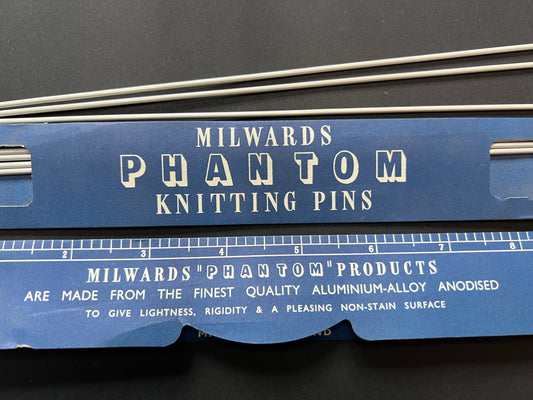 Packet of 4 MILWARDS PHANTOM KNITTING PINS 9" 22cm size 10 (3mm) or 14 (1mm)