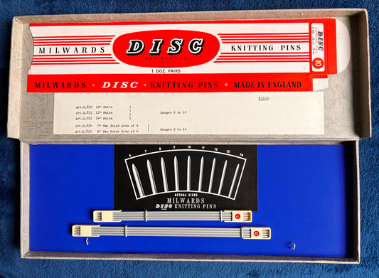 Vintage Sales Reps Sample Box of Milwards Knitting Pins Gauge 10 and 12