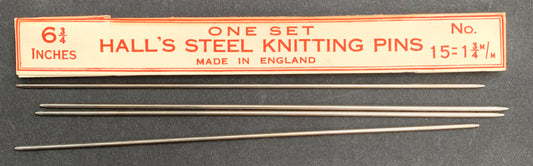 1 Set of 4 HALL'S STEEL KNITTING PINS 6 3/4" Made in England