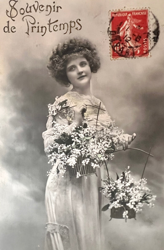 2 Lovely French Postcards Young Women with Flowers 1908 & 1912 (102)