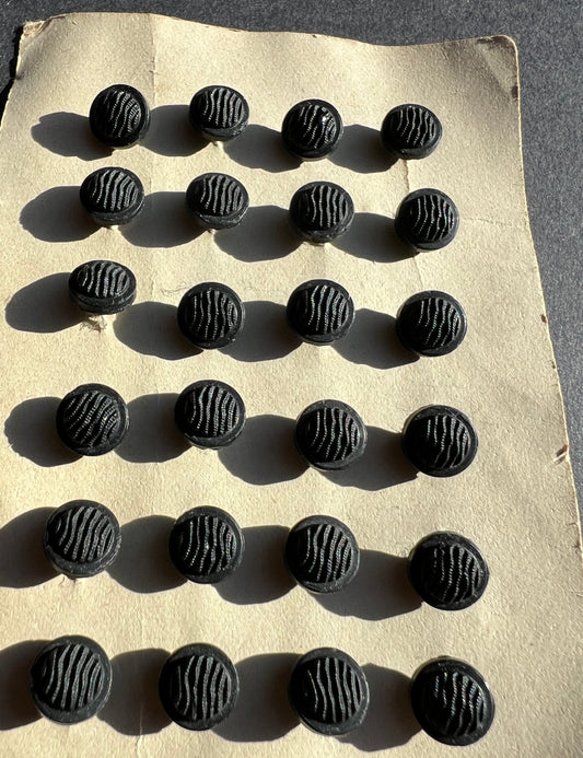 24 Lovely Wavy Early 20th Century 8mm Black Glass Buttons