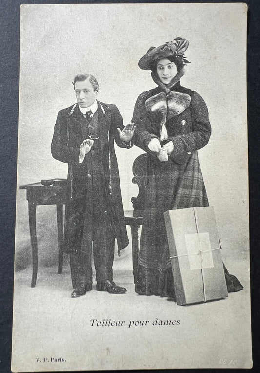 A Lady and Her Tailor...2 Unused Old French Postcards