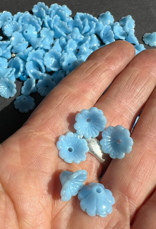 100 Lovely Blue Vintage Flower Buttons / Beads- 8mm tall, 12mm wide