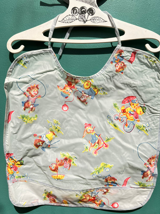 Bunnies with Parasols on Vintage 1940s/50s Bib