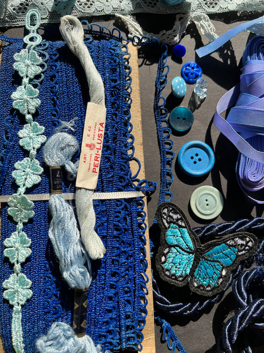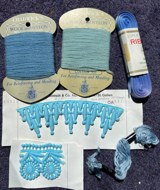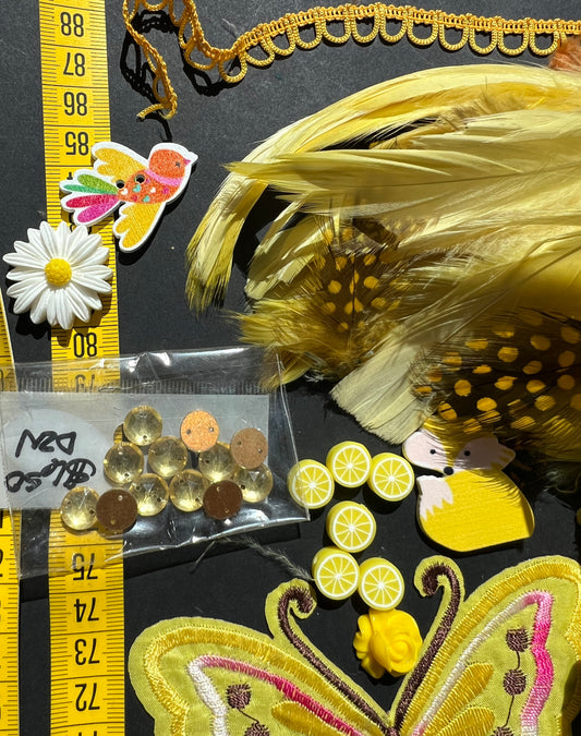 Yellow Vintage Craft Pack 2. Trim, Iron-on Parches, Ribbon, Thread Etc