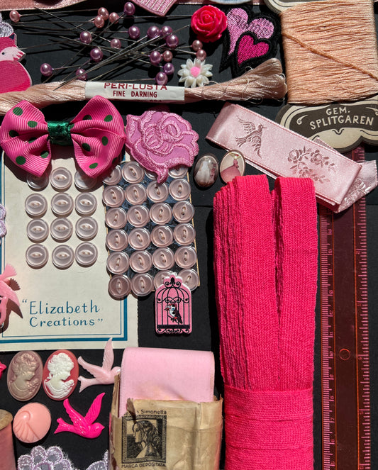 Pink Vintage Craft Pack 2 incl Buttons, Trim, Thread, Appliques etc