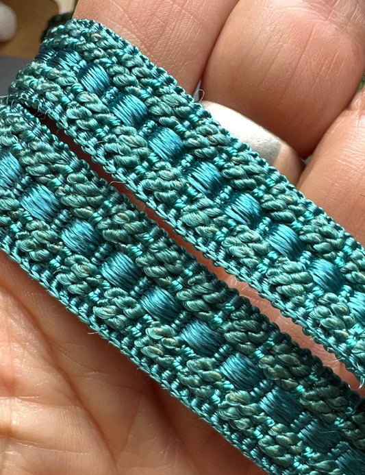 Unusual Vintage Teal Upholstery Trim / Braid 1.5cm wide - 25m or 14m