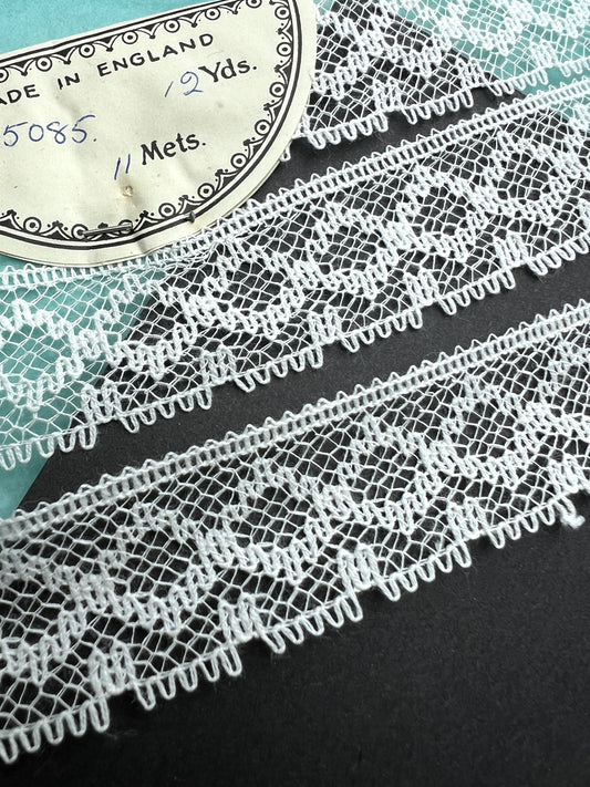 12 Yds Unusual Vintage Made in England 2cm White Lace Trim