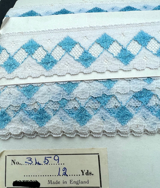 12yds Striking Vintage Blue + White 3cm wide Trim Made in England