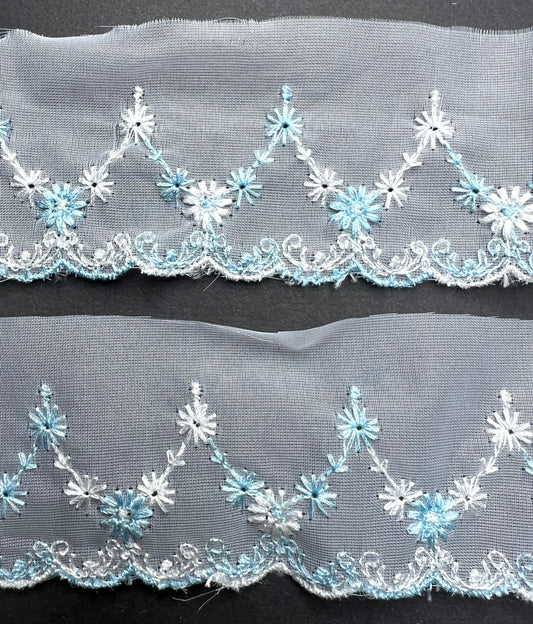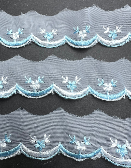 12yds Delicate Vintage Blue Flower 2.8cm wide Trim Made in England