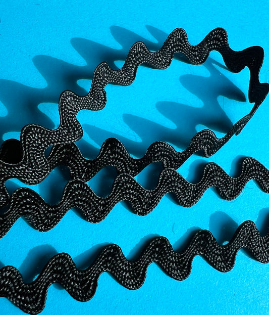 36 yds Vintage Polish Black Ric Rac - 8mm Wave, 3mm wide