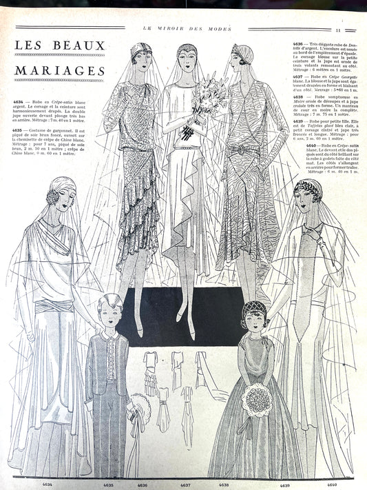 Gorgeous Fashion Illustrations incl. wedding dresses in 1929 French Womens Paper LE MIROIR DES MODES