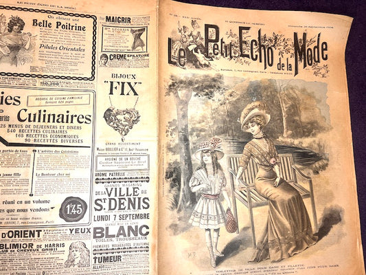Elegant mother and Daughter in September 1908 French Magazine Le Petit Echo de la Mode