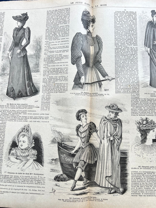 At The Beach in 1895 - French Fashion Paper Le Petit Echo de la Mode