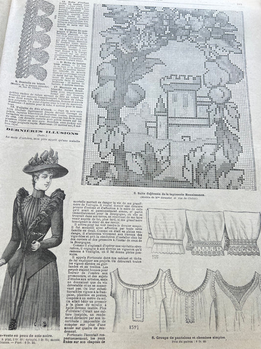 1886 Childrens Games and Tapestry Pattern of Devils in French Fashion Paper Le Petit Echo de la Mode