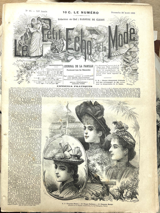 Wedding Dress, Hats and Hatpins in November 1890 - French Fashion Paper Le Petit Echo de la Mode