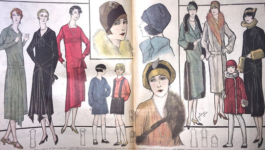 Mother & Daughter on cover of February 1929 French Fashion Paper Le Petit Echo de la Mode