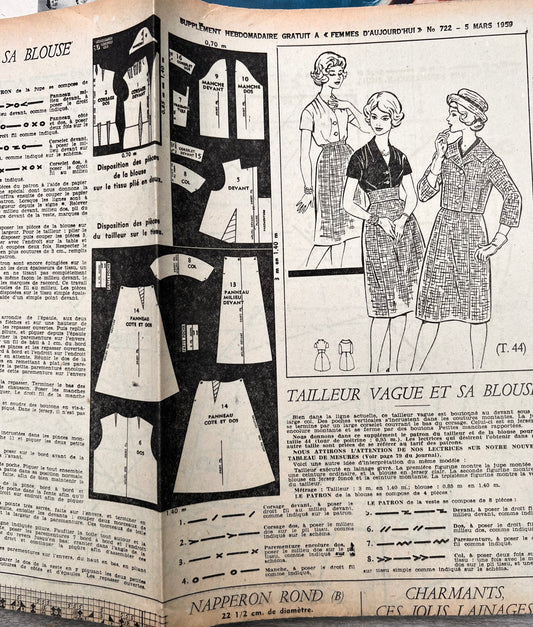 March 1959 French Women's Magazine Femmes d'Aujourd'hui with Pattern