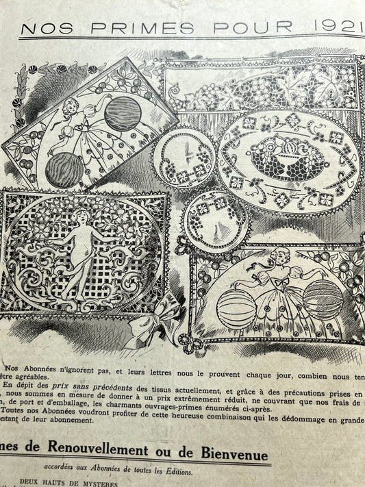 January 1921 French Needlework Magazine with 2 Patterns - Journal des Ouvrages de Dames Wonderful Embroidery Fashion Crochet Knitting Interiors Sewing