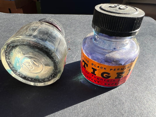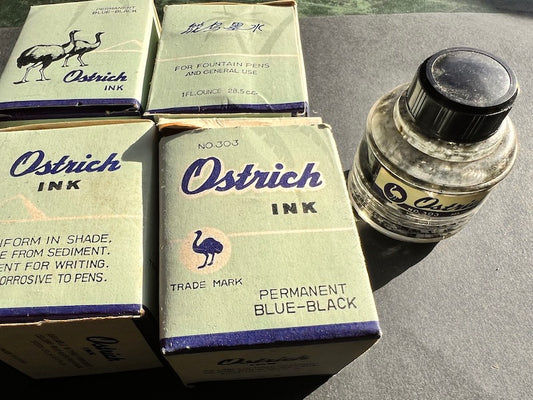 Little Glass Ostrich Ink Bottle with Bakelite Lid and Box