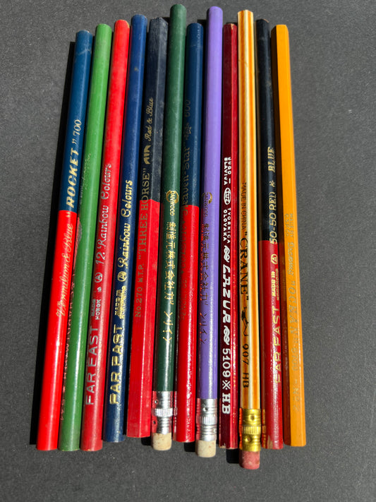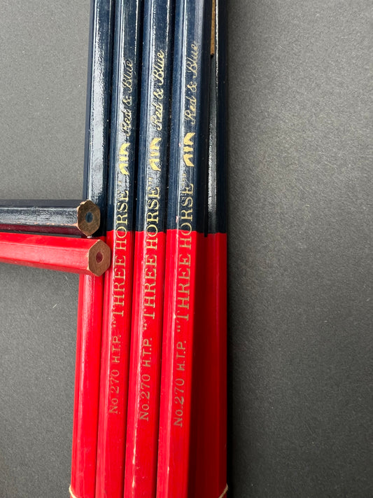 A Bundle of 12 Vintage THREE HORSE Double Ended Red & Blue Pencils