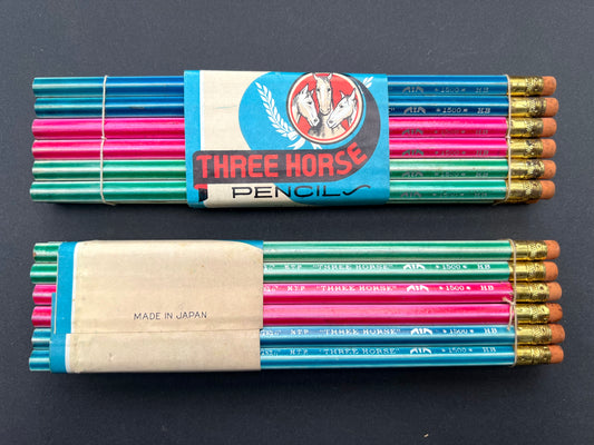 Bundle of 12 THREE HORSE HB Pencils Made in Japan.