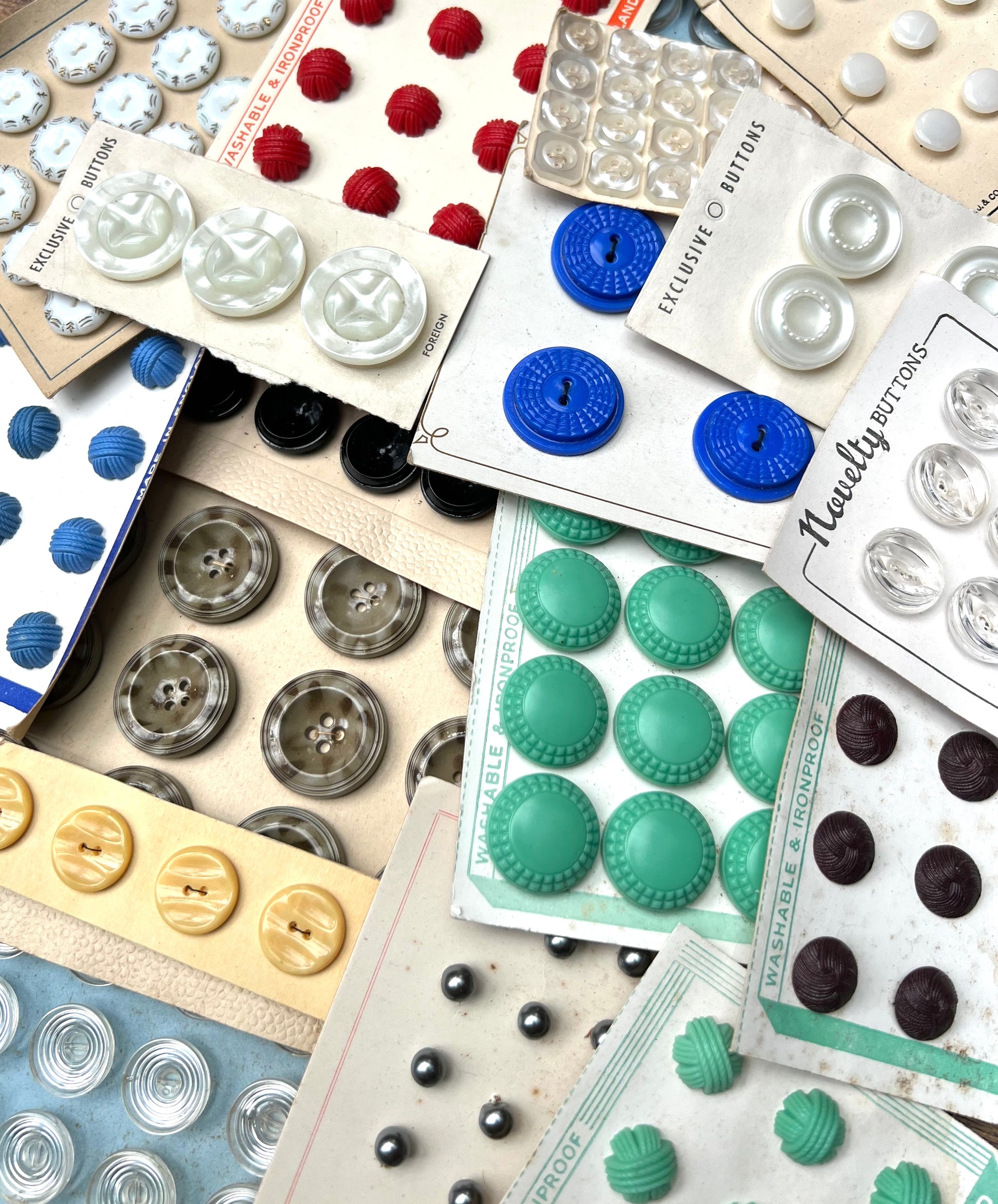 18 Sheets of Multicoloured Glass and Lucite Vintage Buttons