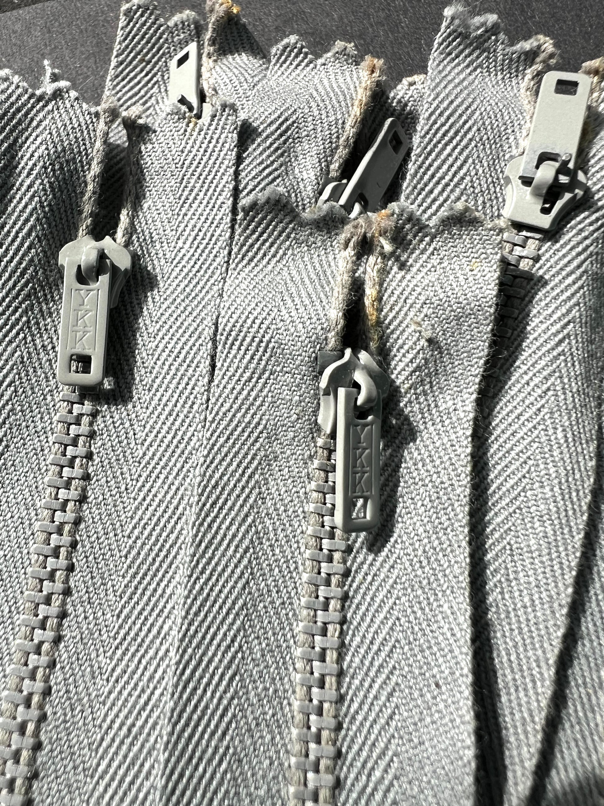 10 Vintage 12" Soft Grey Y.K.K zips.