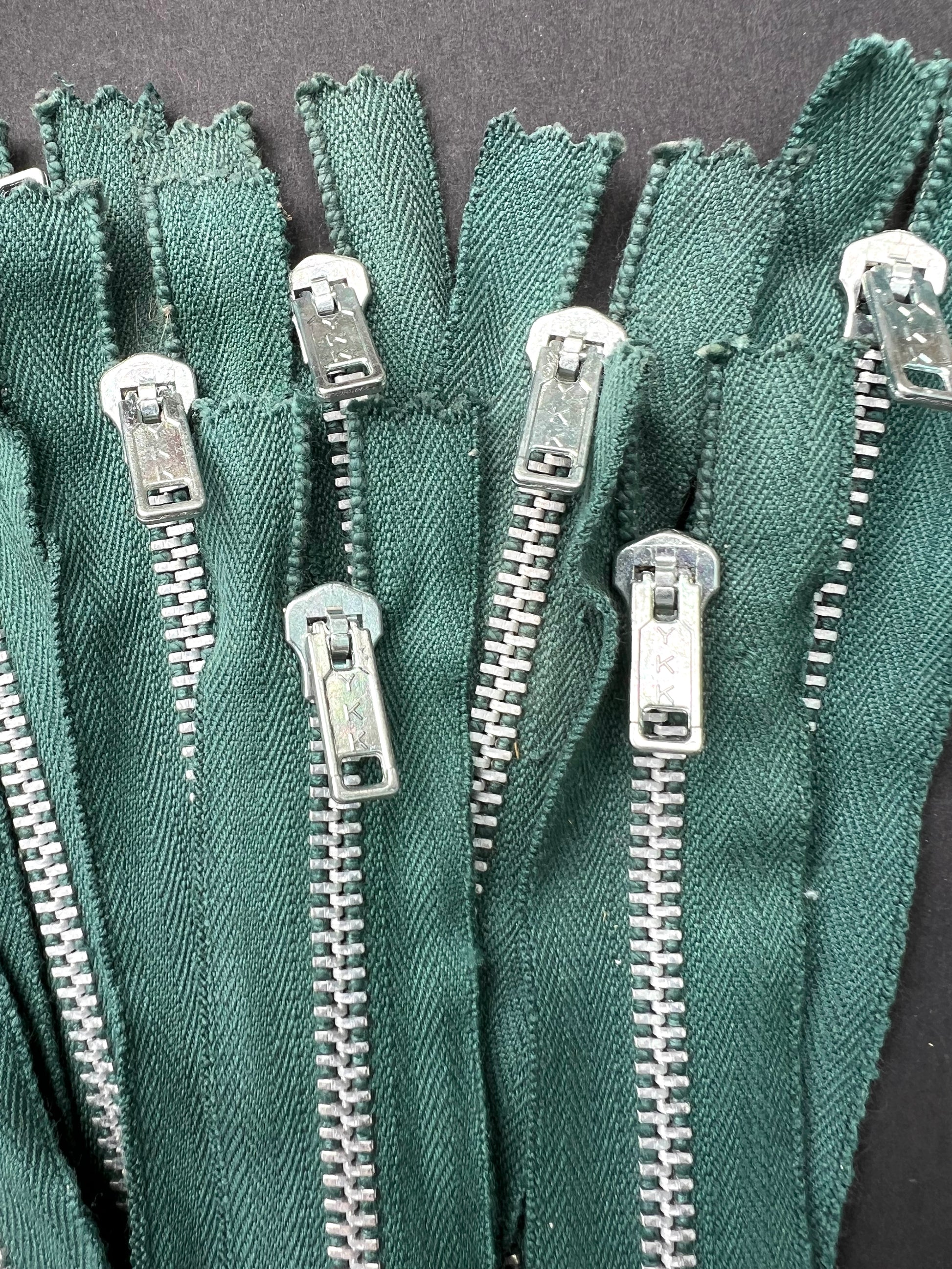 10 Lovely Chunky Vintage 6" Forest Green Y.K.K Metal Teeth Zips