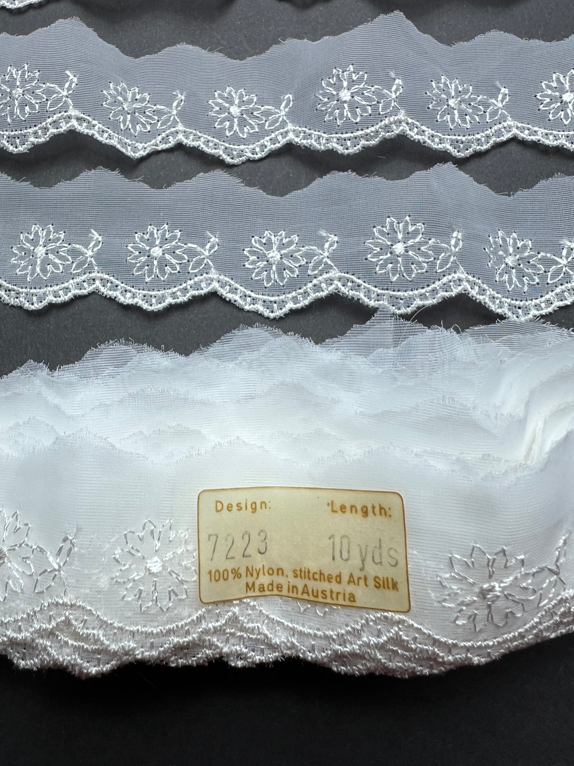 10yds Pretty Floral Vintage Austrian Art Silk White Trim