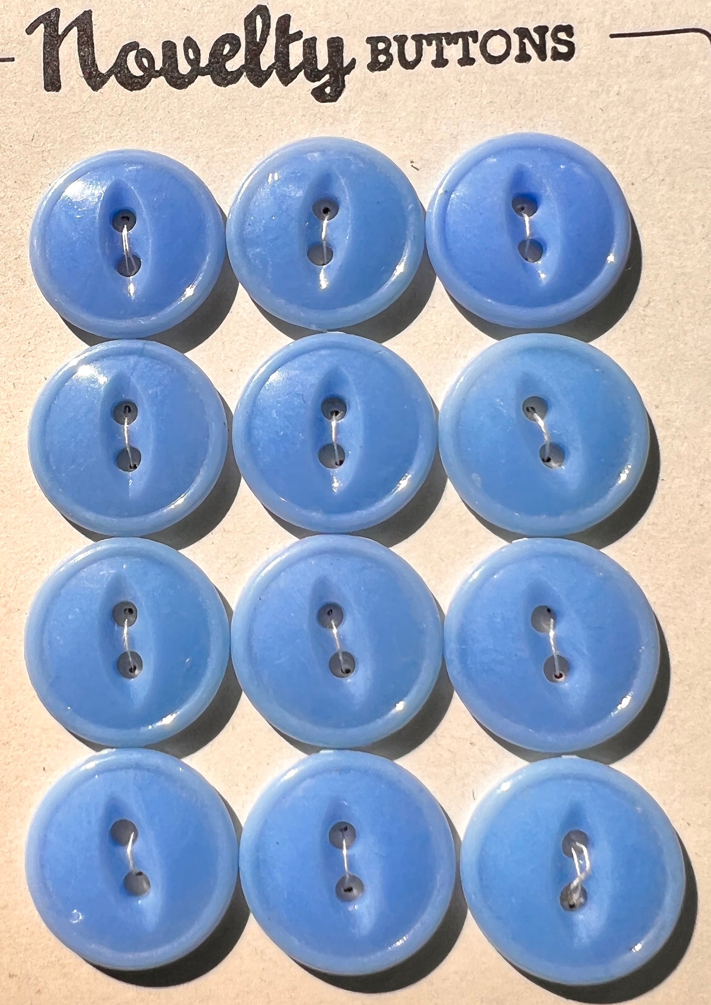 12 Sky Blue 1940s Buttons - 1.8cm wide.