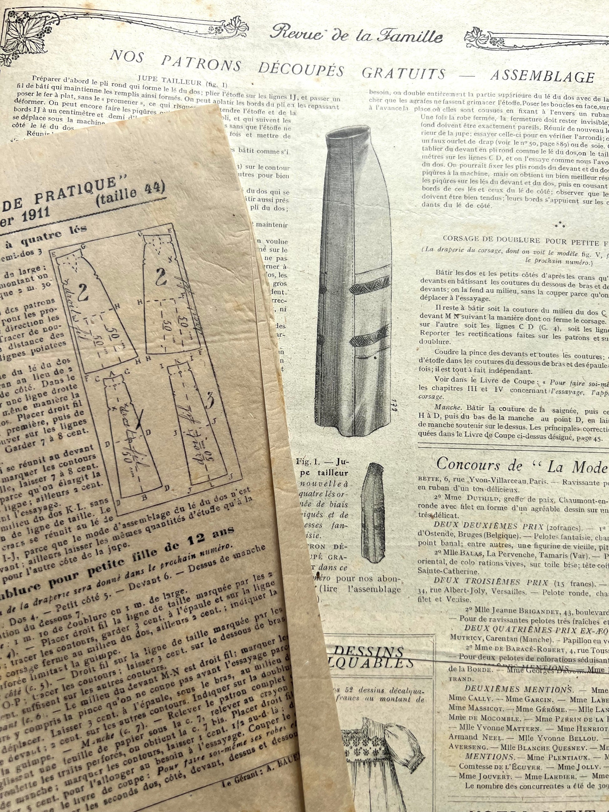 February 1911 French Women's Magazine La Mode Pratique with Skirt + Top Pattern