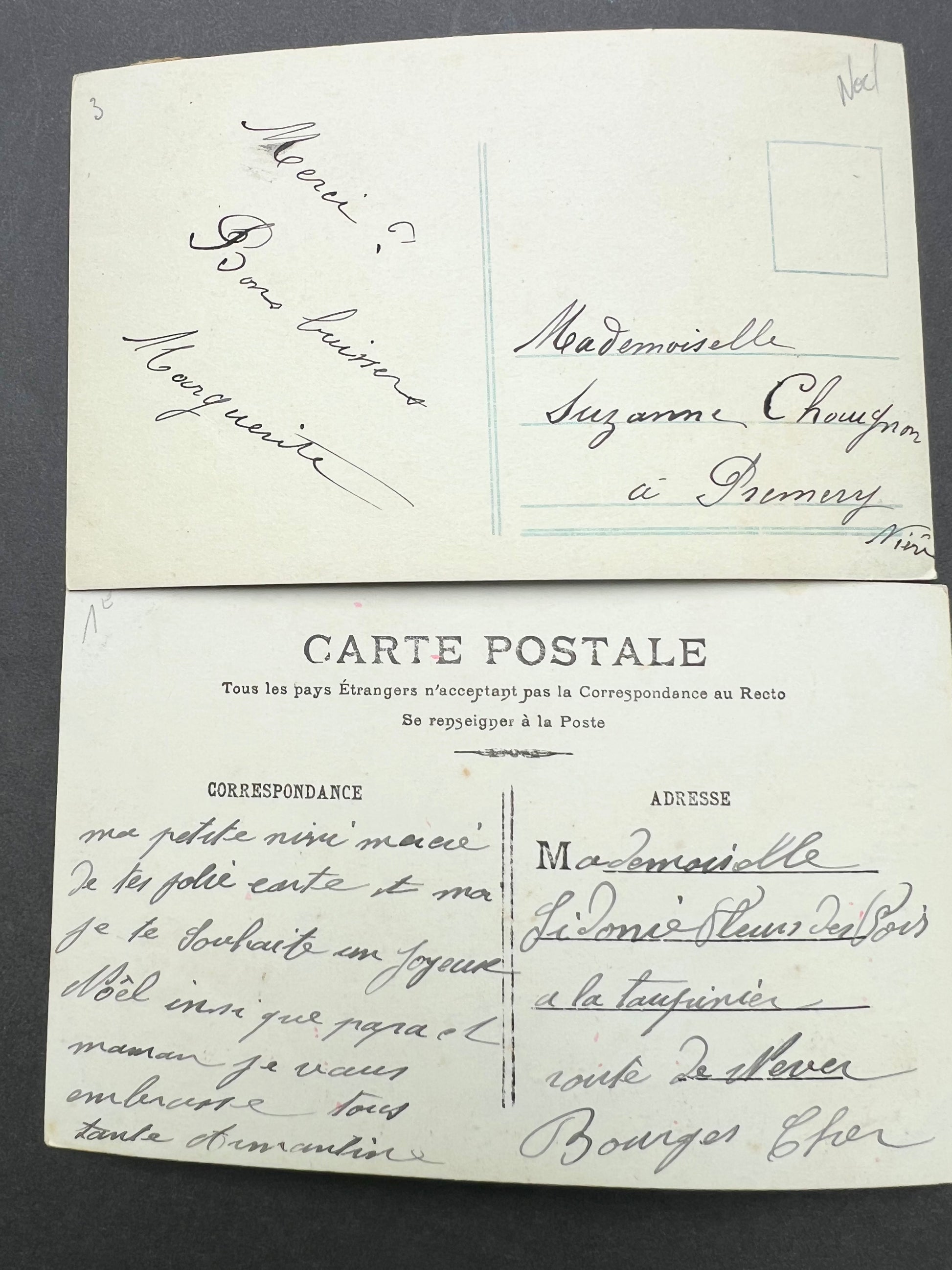 2 Pretty 1900s French Postcard ..Mistletoe & Happy Christmas
