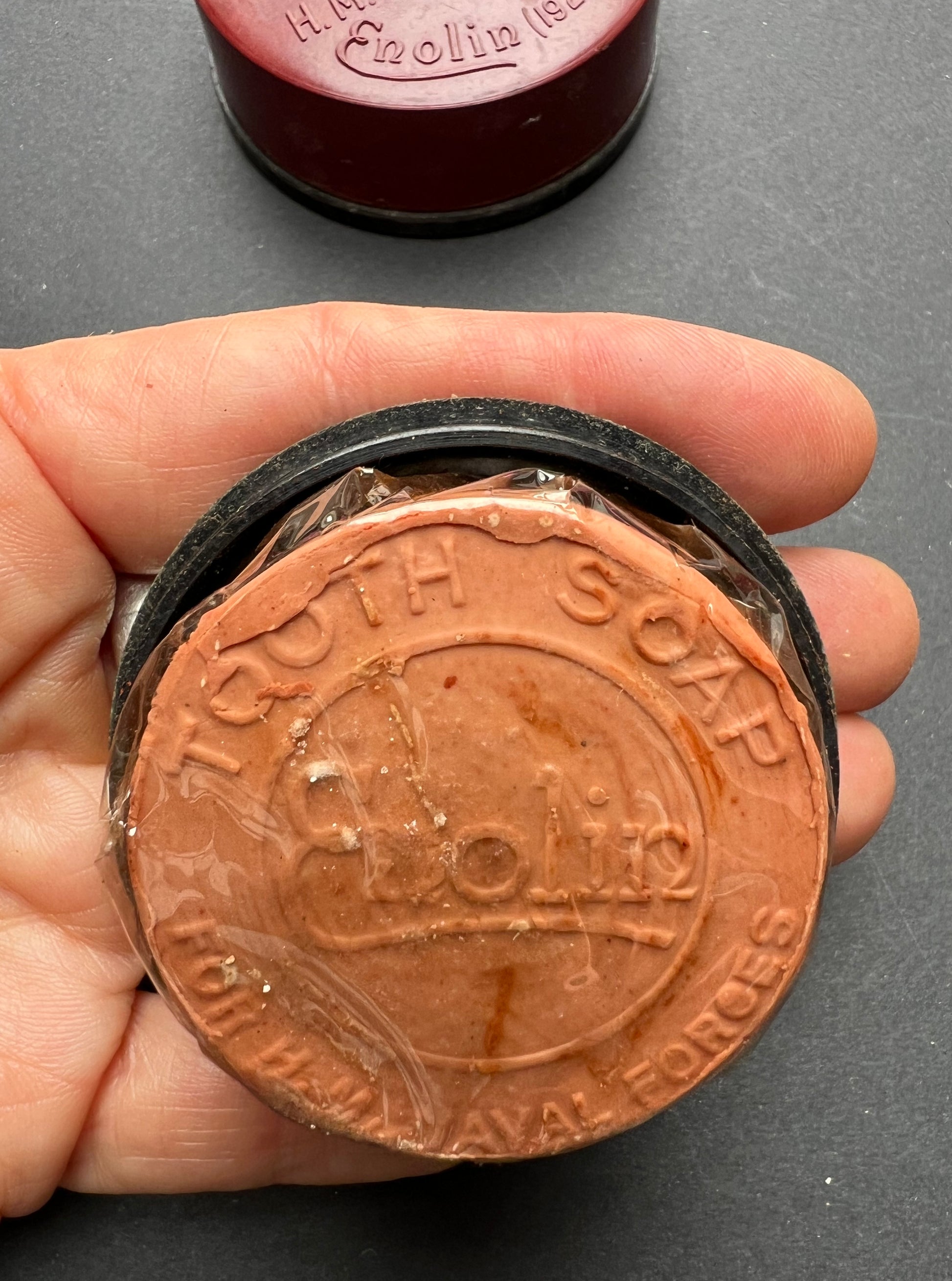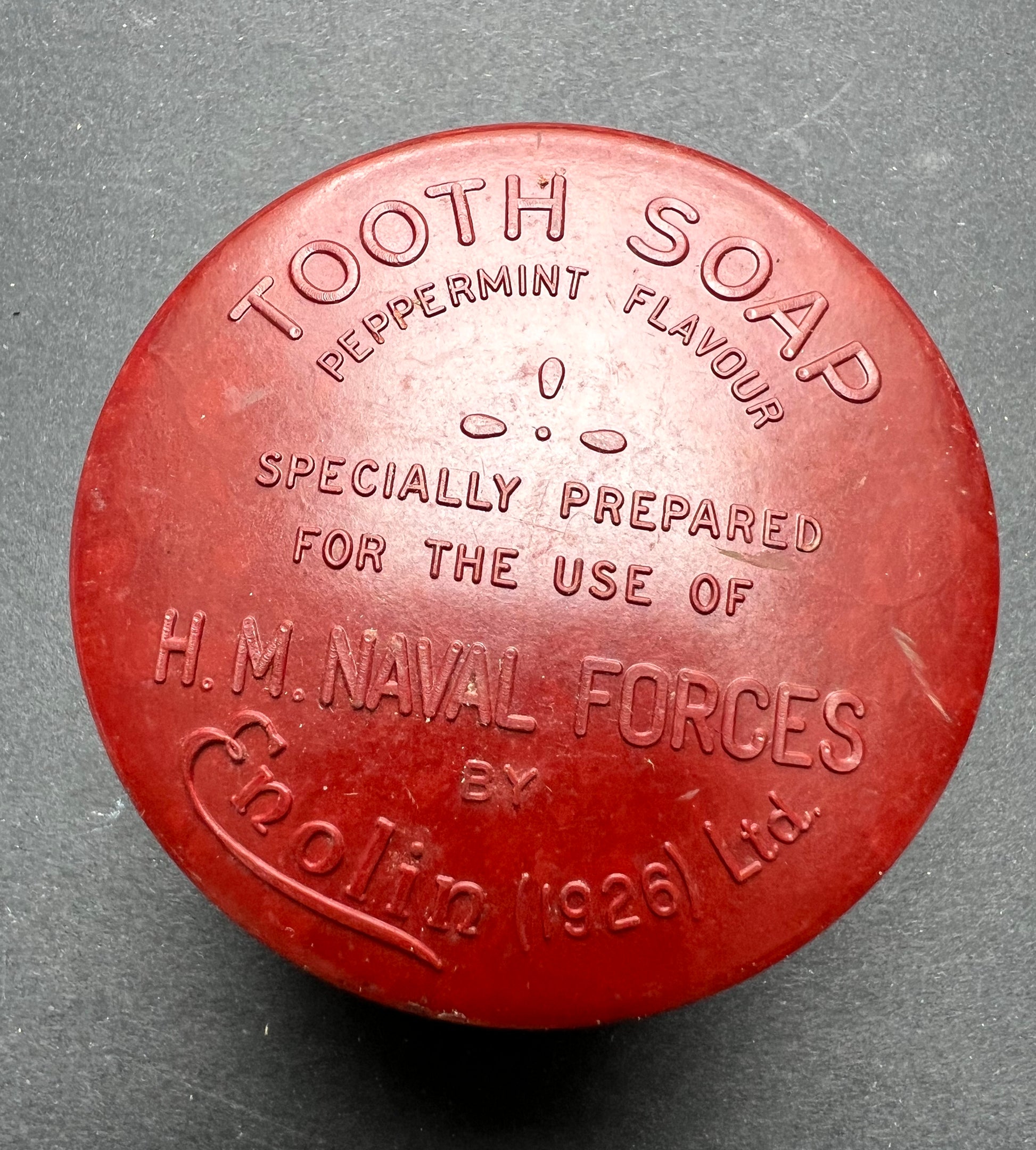 "TOOTH SOAP PEPPERMINT FLAVOUR SPECIALLY PREPARED FOR THE USE OF H M NAVAL FORCES BY ENOLIN (1926) LTD."