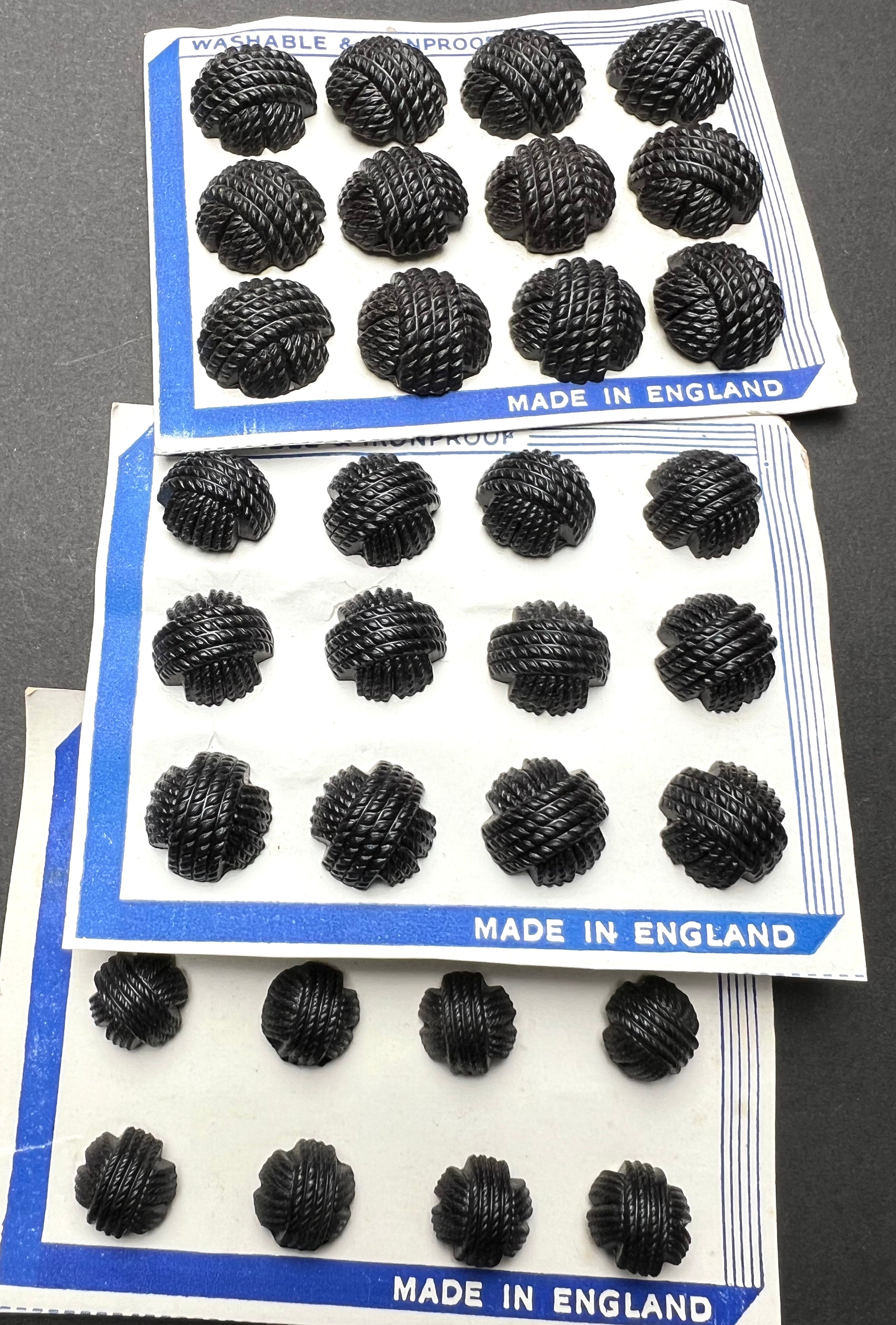 12 black bakelite buttons moulded to look like threads woven into each other ...