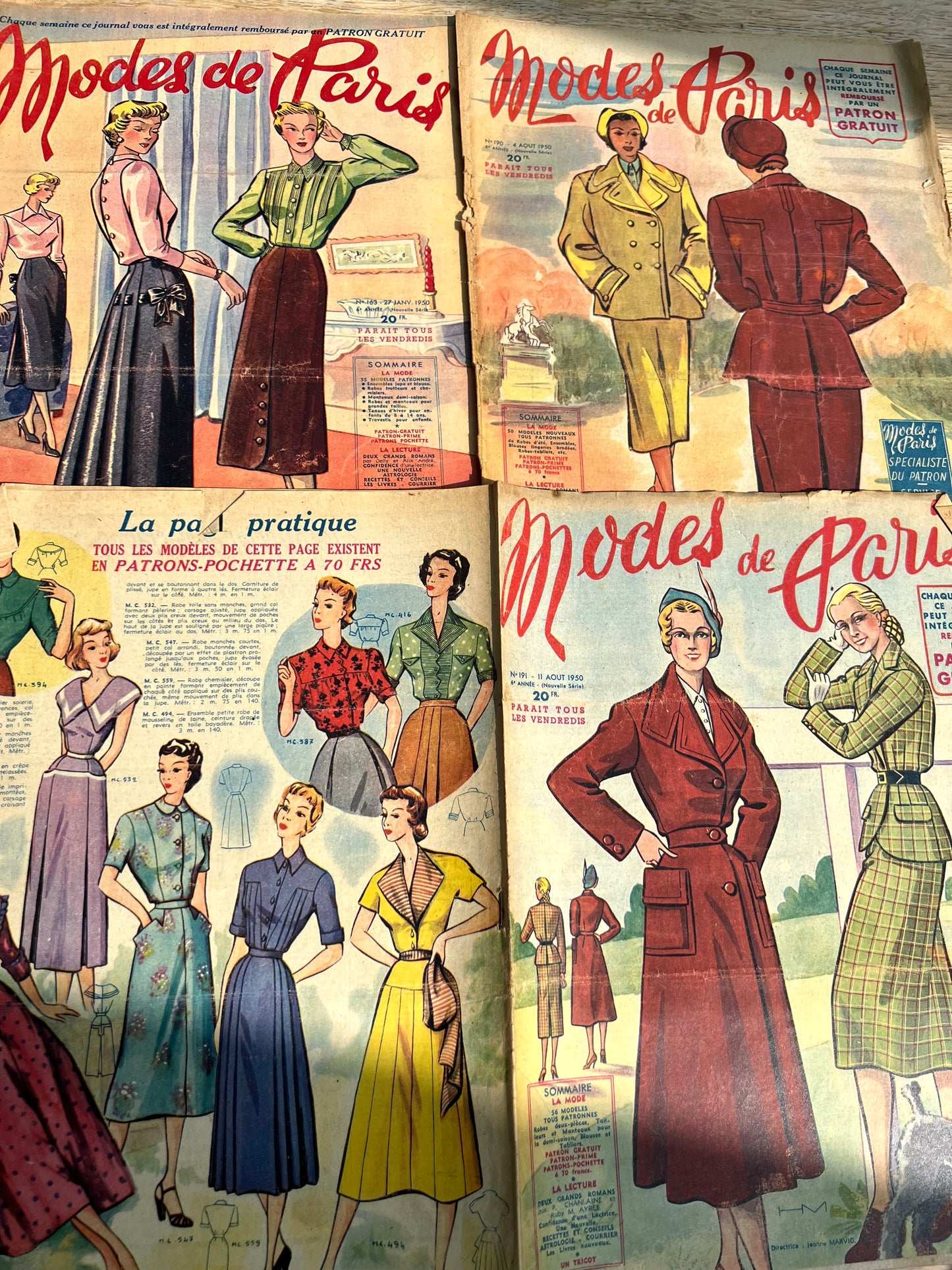 3 Copies of 1950 French Women's Magazines Mode de Paris.