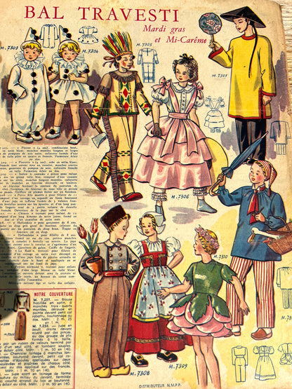 3 x 1950 French Mode de Paris incl LOTS of Fashion Illustrations and kids Mardi Gras Costumes
