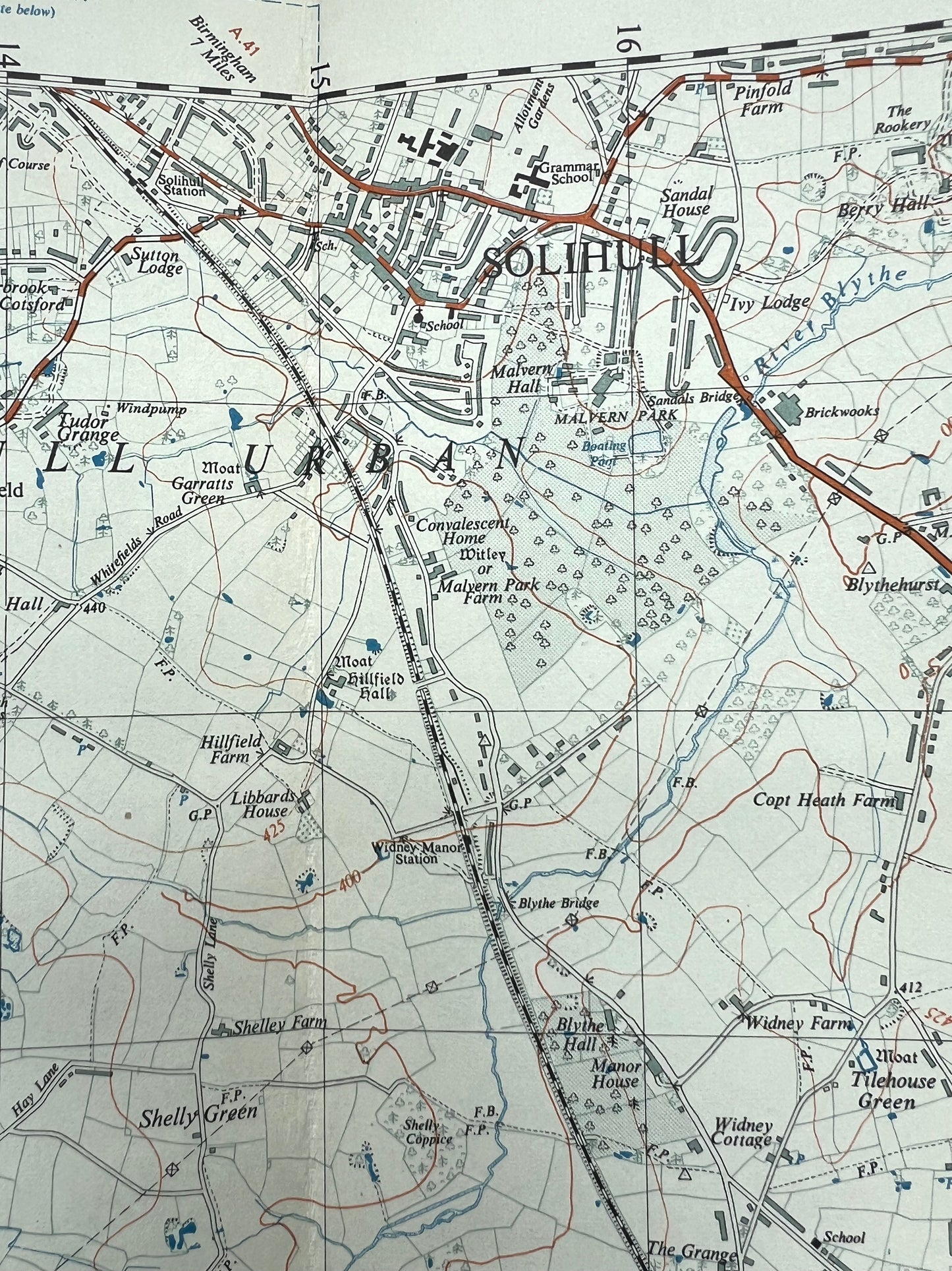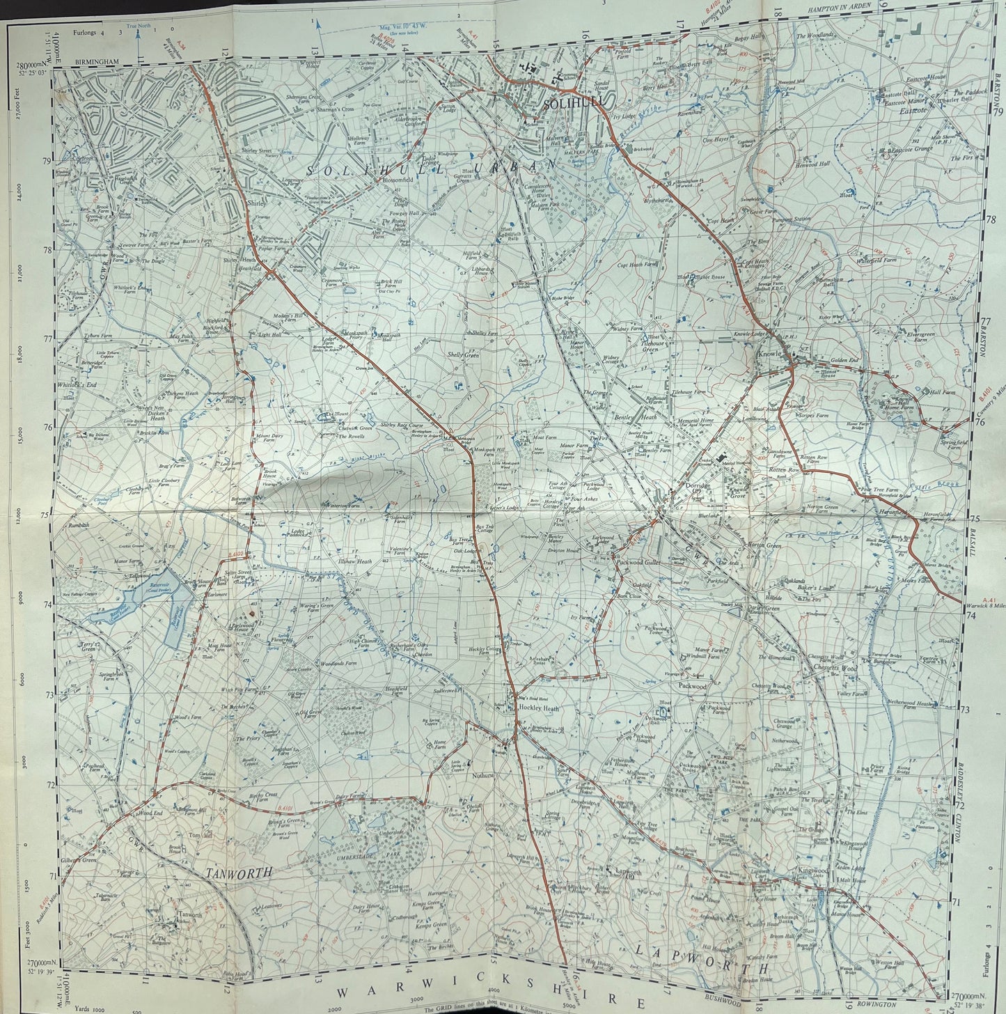 1947 Ordnance Survey 2.5" to mile of SOLIHULL Sheet42/17
