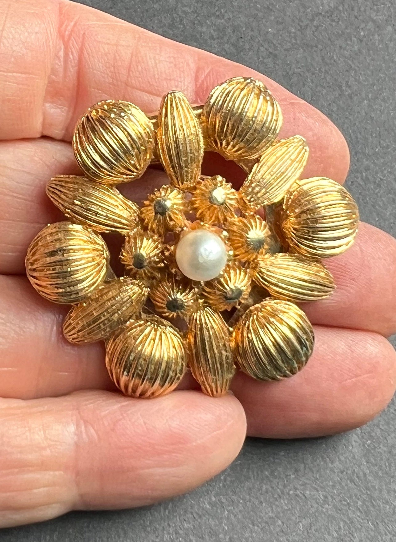 Impressive golden and faux pearl Scarf Clip.