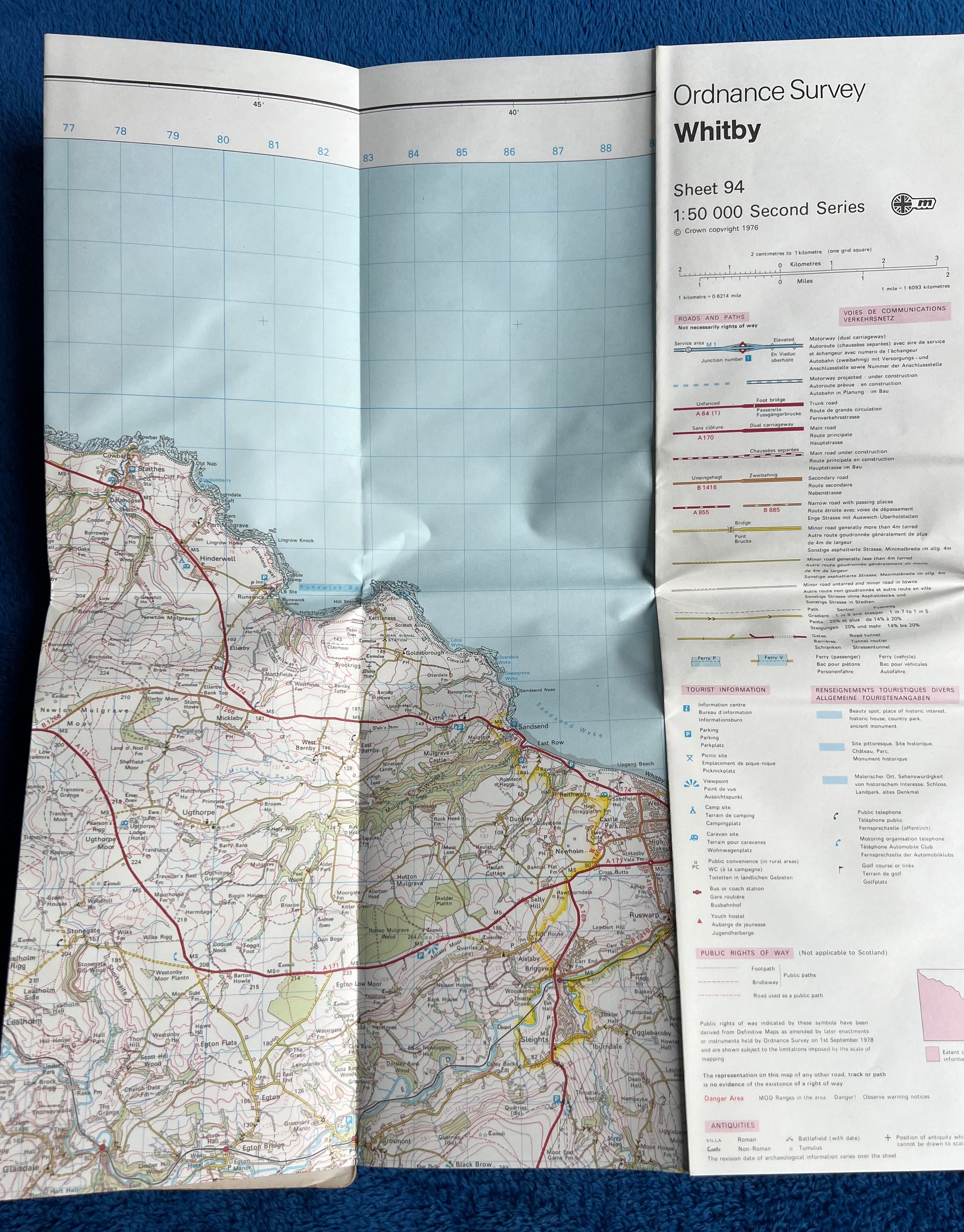 1976, 1983 or 1989 ORDNANCE SURVEY Map of WHITBY & Surrounding Area Sheet 94.