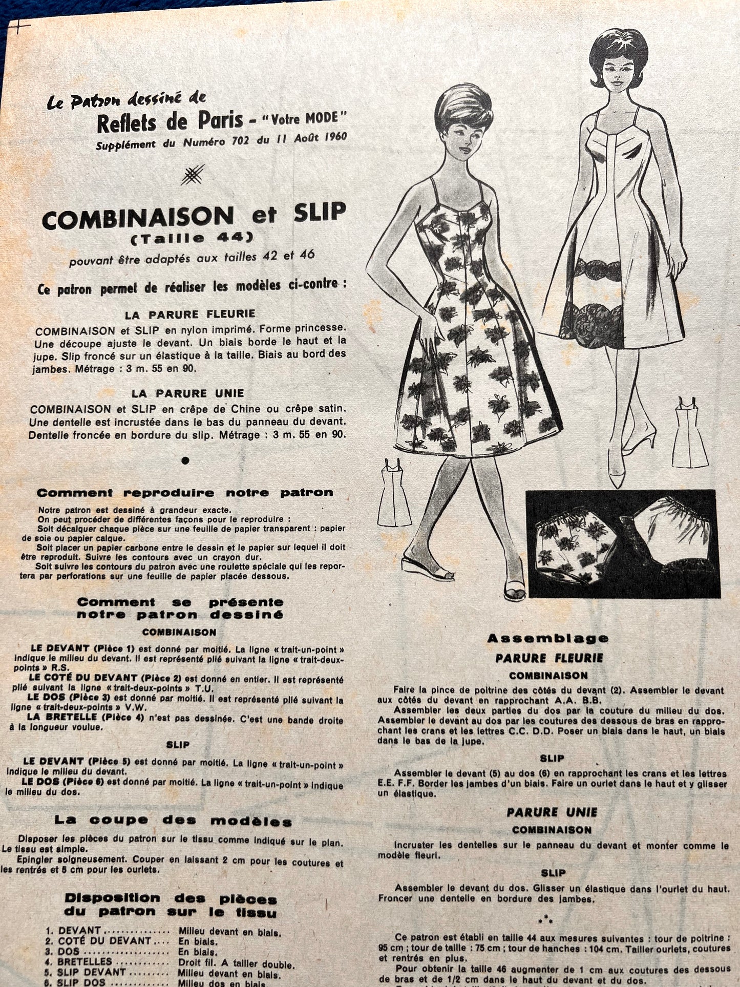 11th August 1960 French Women's Magazine Votre Mode/Reflets de Paris incl Dress Pattern