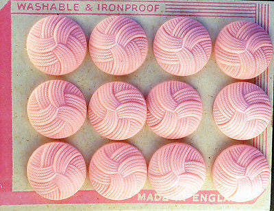12 soft pink catalin buttons - effectively moulded to look like interlocking threads ...