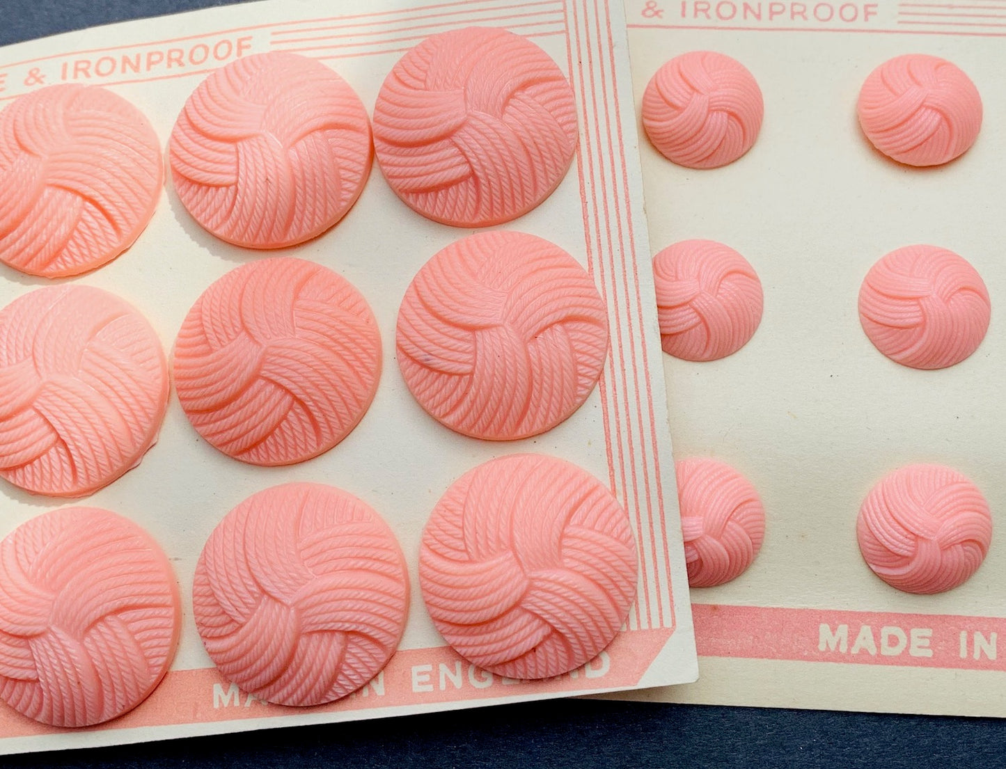 Catalin PINK Interlocking Thread Buttons -2.2cm, 1.6cm or 1.4cm - 12 on Display Card