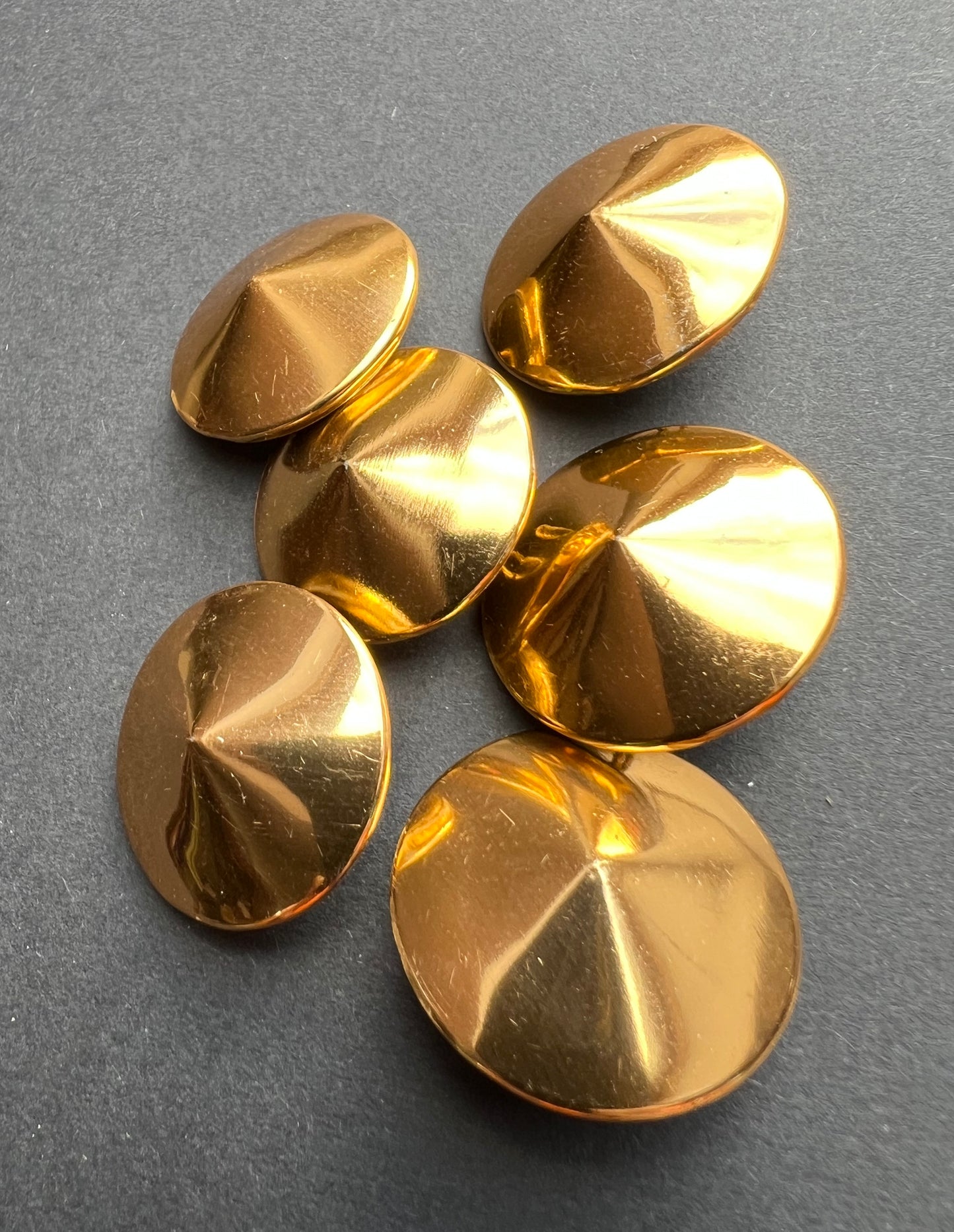 6 Magnificent Gold Cone 2.7cm Vintage Buttons