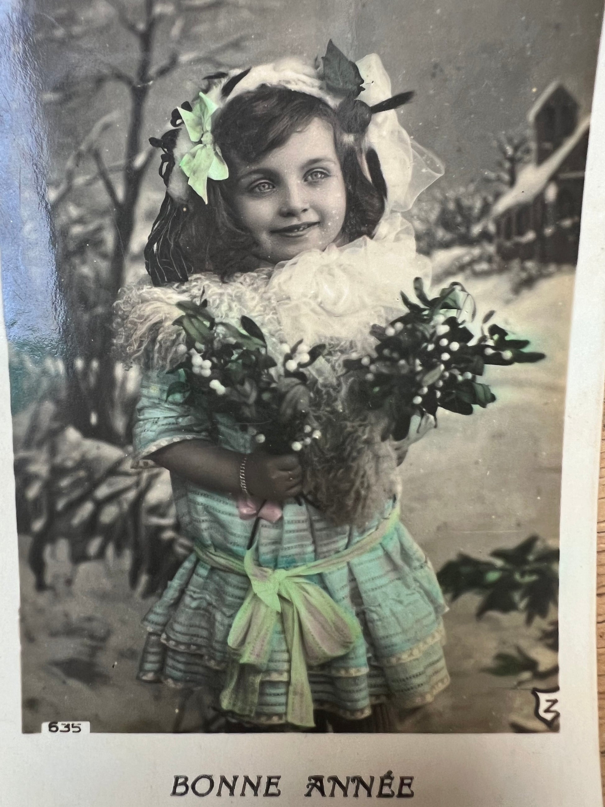 4 French Children in the Snow Christmas Postcards sent in 1916 & 1919